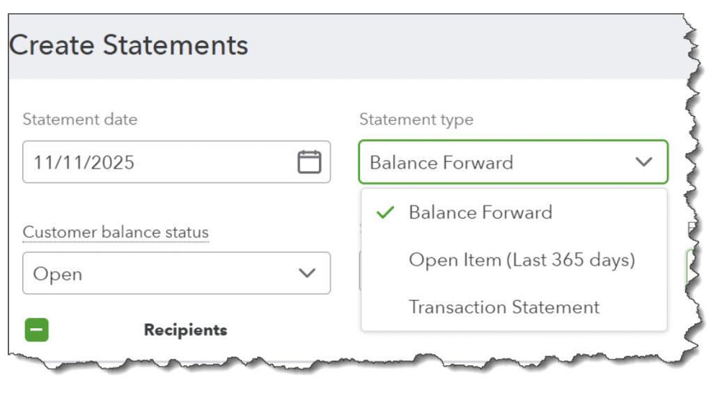 As we already noted, it may be challenging to get customers to pay their current bills during December, let alone catch up on aging balances. You can just send another invoice or a reminder email. But it may be more effective to create statements for these individuals and companies. There are three types: