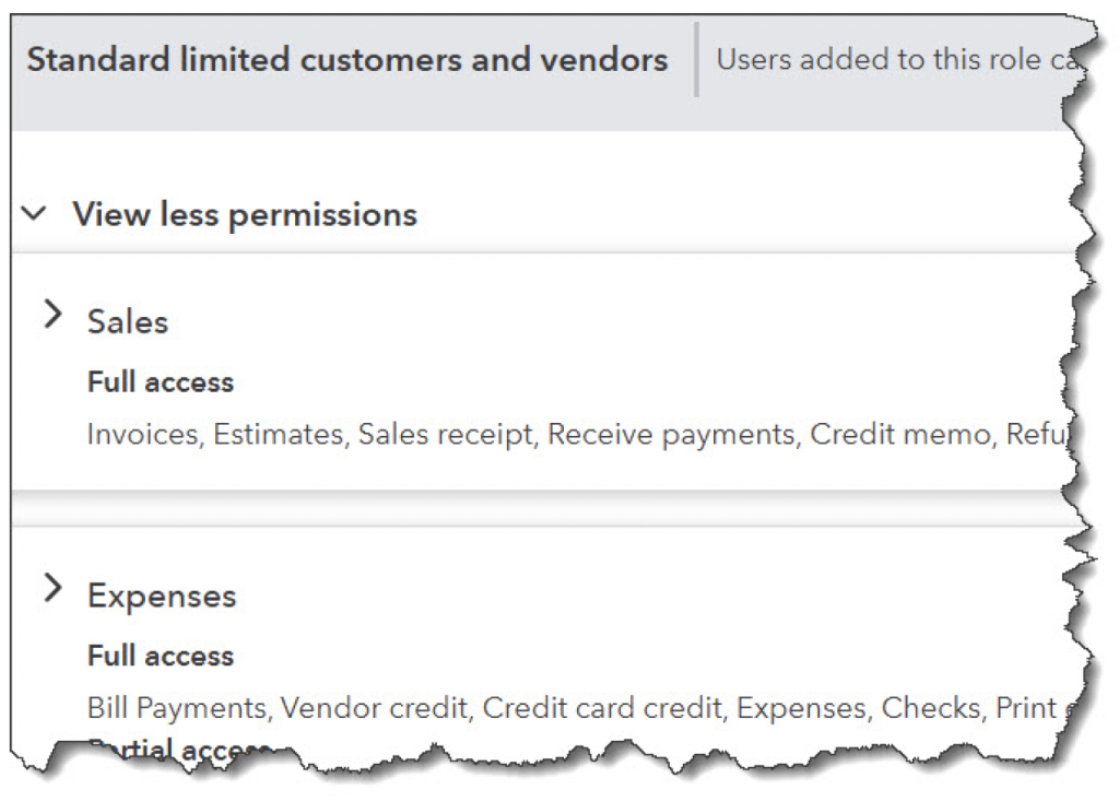 - Standard limited customers and vendors (can see and do everything with Customers and Sales, and Vendors and Purchases).