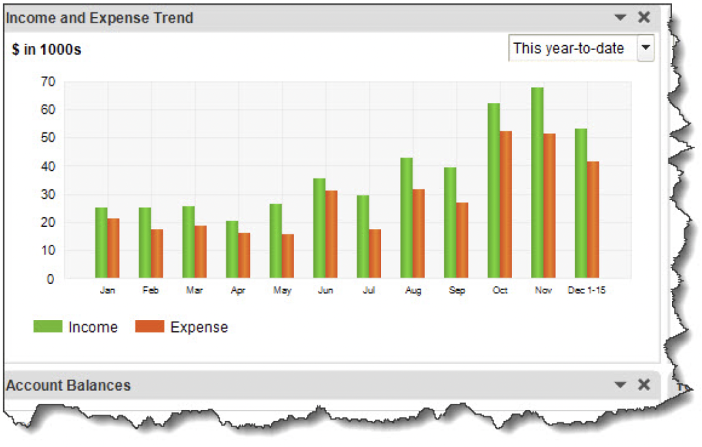 The Company Snapshot, on the other hand, is easier to understand. It, too, is a series of charts and tables that can provide a quick overview of the state of your company’s finances. The information these graphics and lists provide include Income and Expense Trends, Customers Who Owe Money, and Expense Breakdown. You can click data points in these graphs and lists to see the underlying detail. We recommend you open the Company Snapshot whenever you open QuickBooks. Click the Payments and Customers tabs to see charts and tables focused on those elements of your accounting data.
